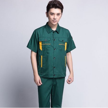 苏州鹰诺服装:橘黄拼黄色短袖工作服AD09-5