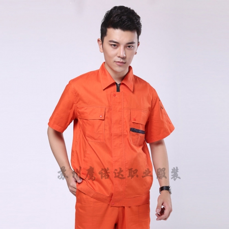 苏州鹰诺服装:藏青拼大红夏季工作服AD103
