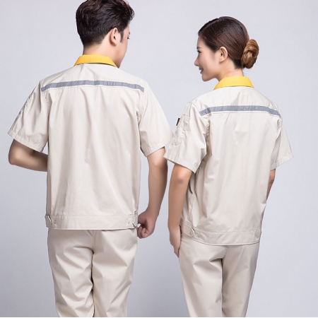 苏州鹰诺服装:黄拼驼色工作服AC17-4