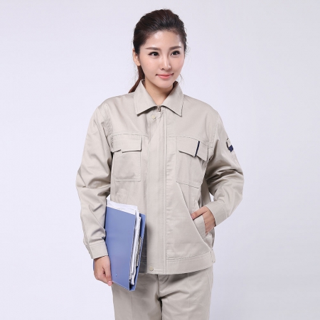 苏州鹰诺服装:米灰拼铁灰工作服AC14-3