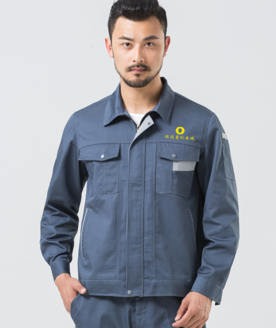 这次我们推荐的是高级灰的工作服,颜色很显大方,是市面上极少出现的灰色。因为是机电城上班,人员流量比较大,所以后背要加LOGO和电话以便起到宣传的作用。