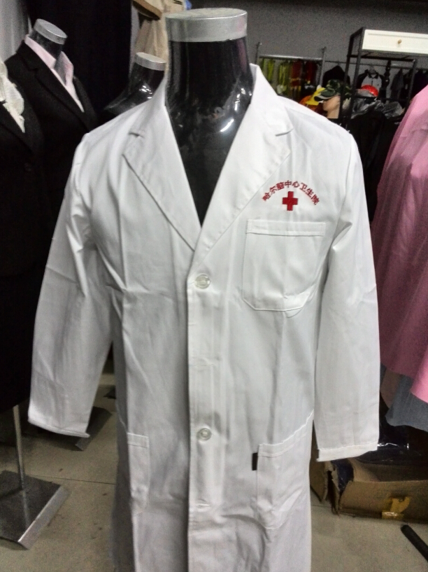 此款白大褂采用是纯棉的面料,其吸汗功能和透气功能是所有面料里最好一种。众所周知医疗行业的工作服主要是以白大褂为主,但是白大褂看似简单,实则功能要求居多,白色是主要颜色,一则是为了方便辨认,二则是为了药品和器械的卫生。其面料都是选择纯棉:不起静电,吸汗透气不易皱是纯棉的标准型优势,另外做工方便,因医疗行业是一个必须严谨的行业,其做工必须采用包边包缝的工艺,线头要剪裁适当包括,口袋里的前头也都有剪裁适当。扣子数量较少,方便穿脱。