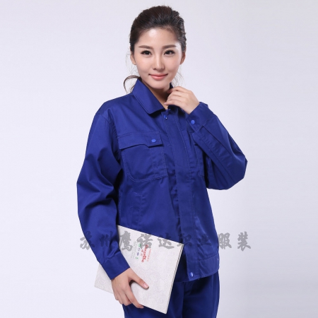 苏州鹰诺服装:艳蓝配浅灰涤棉纱卡建筑工程工作服AC072-JZ