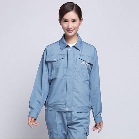 苏州鹰诺服装:新款湖蓝色拼浅灰秋季工作服AC20-2