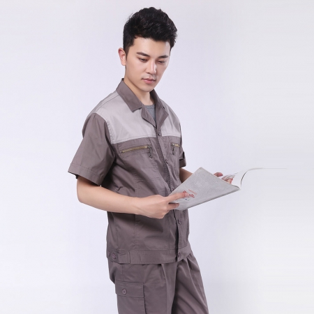 苏州鹰诺服装:铁灰色短袖工作服AD118-DX