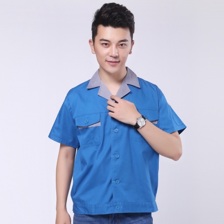 苏州鹰诺服装:拼蓝色夏季工作服AD063-XJ