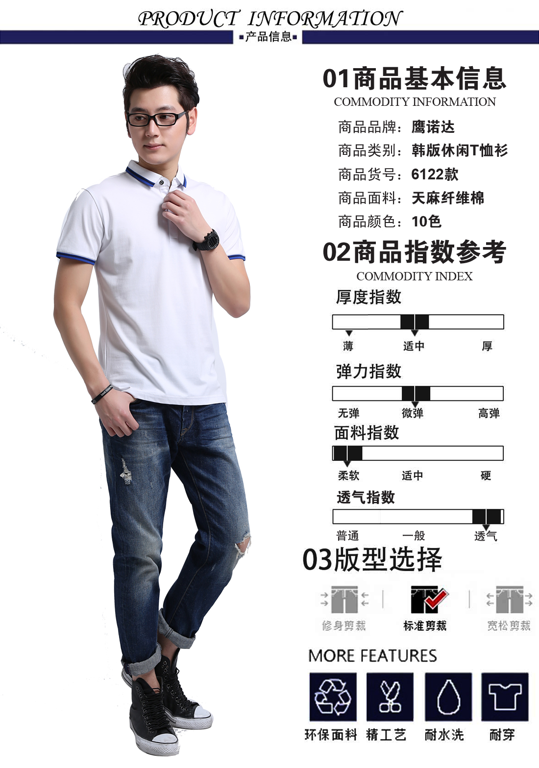 - 游客于 2017-08-01 10:41:32 发表苏州鹰诺服装:天麻纤维棉Polo衫ID6122-9