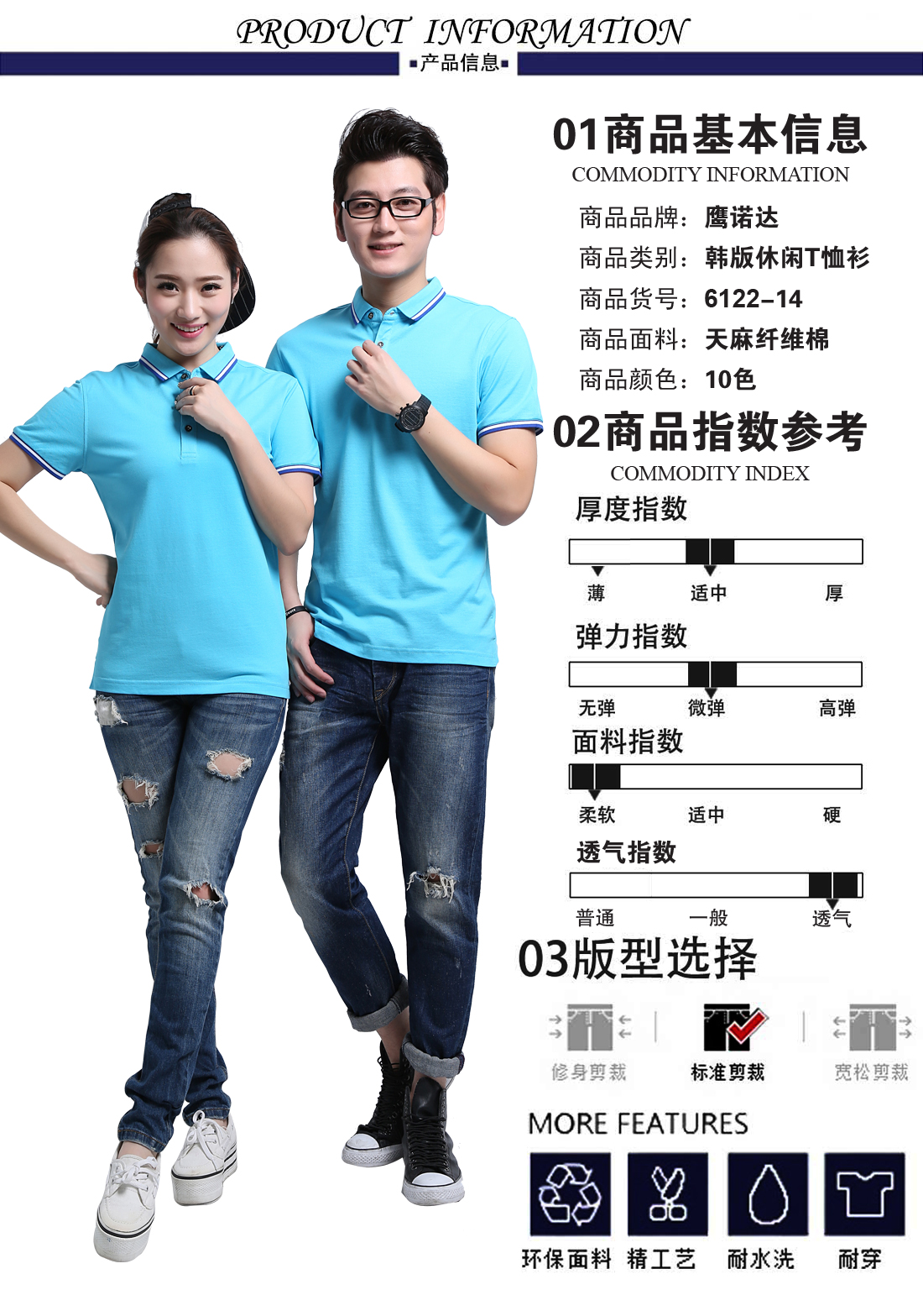 游客于 2017-08-01 10:42:03 发表浅蓝电脑提花领天麻纤维棉Polo衫ID6122-14