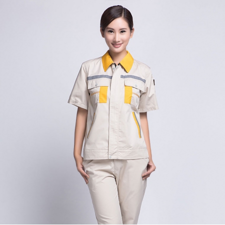 苏州鹰诺服装:蟹清拼橘黄春季工作服AC06-4