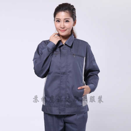 苏州鹰诺服装:银灰拼紫红银白春秋工作服AC02-2