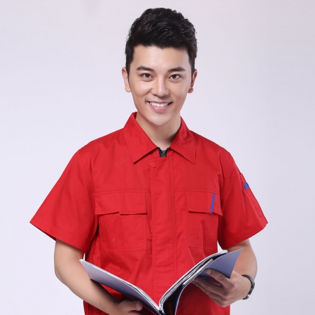 苏州鹰诺服装:红色拼藏青工作服AC13-2