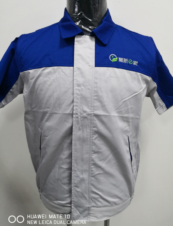 宁波复新保洁最终采用的是我们的AC072的款式  此款有三个拼色的系列。材质高棉的环保面料,版型挺括,口袋也是采用防盗口袋设计,避免口袋物品的掉落。左臂设置笔袋,方便员工放置笔