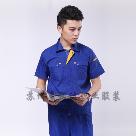 苏州鹰诺服装:艳蓝色短袖工作服AD12-4