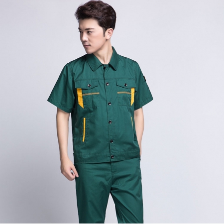 苏州鹰诺服装:橘黄拼黄色短袖工作服AD09-5