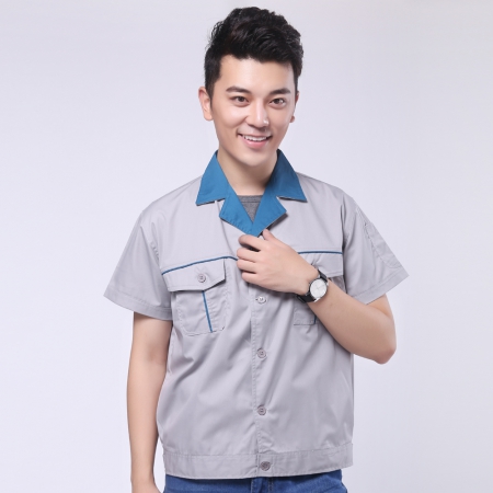苏州鹰诺服装:清灰拼银灰全棉夏季工作服AD06-2