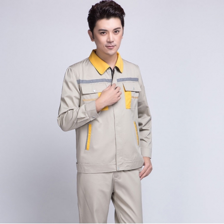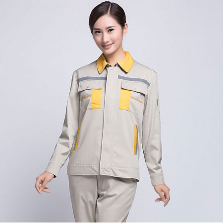 苏州鹰诺服装:米色拼黄色秋季工作服AC09-1