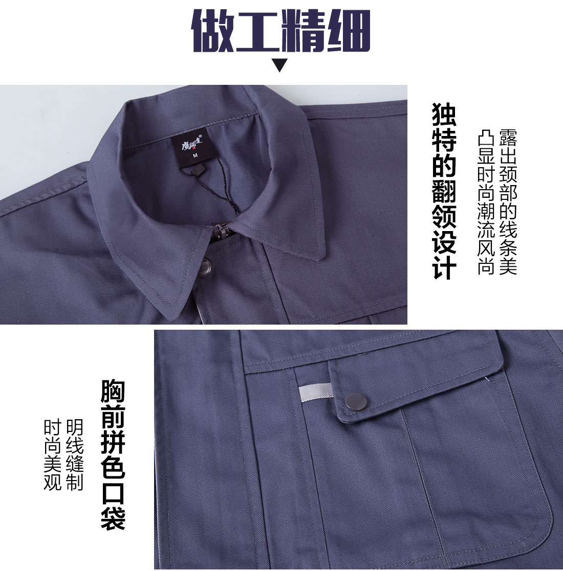 游客于 2017-08-28 08:48:19 发表深灰配浅灰涤棉纱卡春装工衣AC077