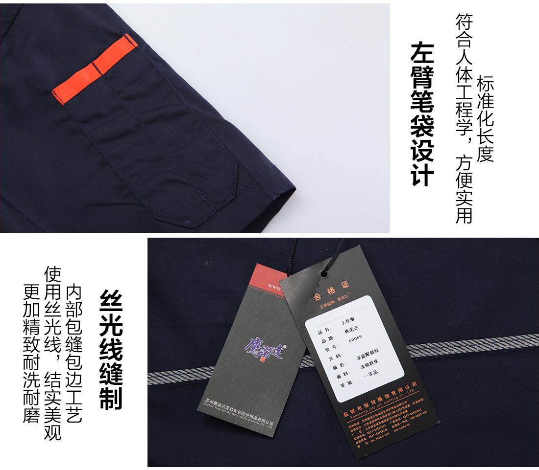 - 游客于 2017-06-20 08:48:43 发表深蓝配桔红夏季工作服套装AD069