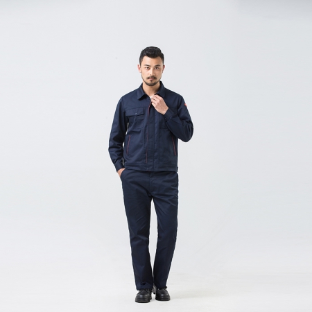 苏州鹰诺服装:深蓝配桔红春秋工作服AC069-CQ