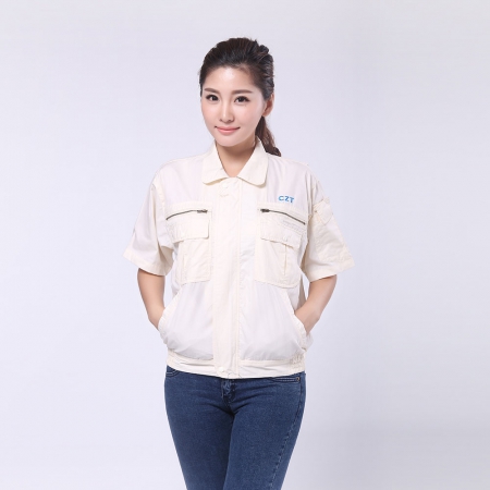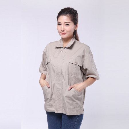 苏州鹰诺服装:驼色短袖工作服AD109-DX