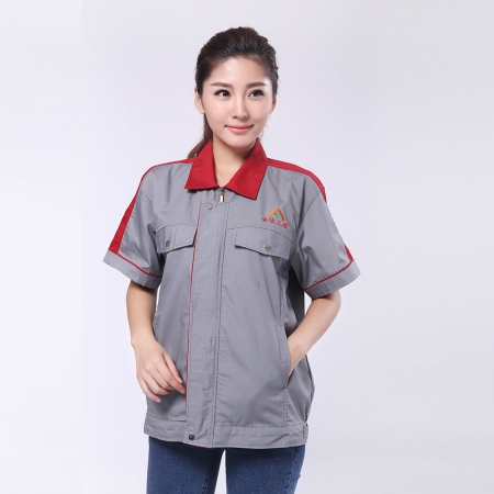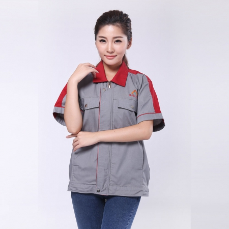 烟灰拼红色夏季工作服AE595-XJ