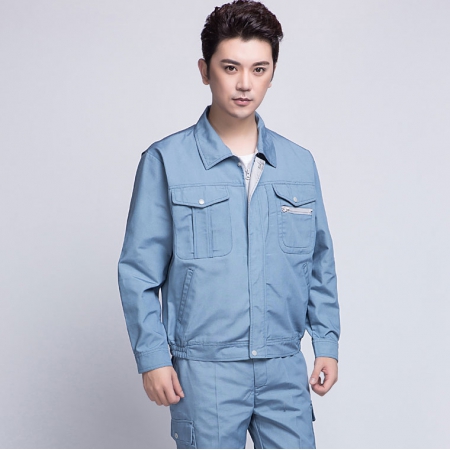 苏州鹰诺服装:新款湖蓝拼浅灰秋季工作服AC17-2
