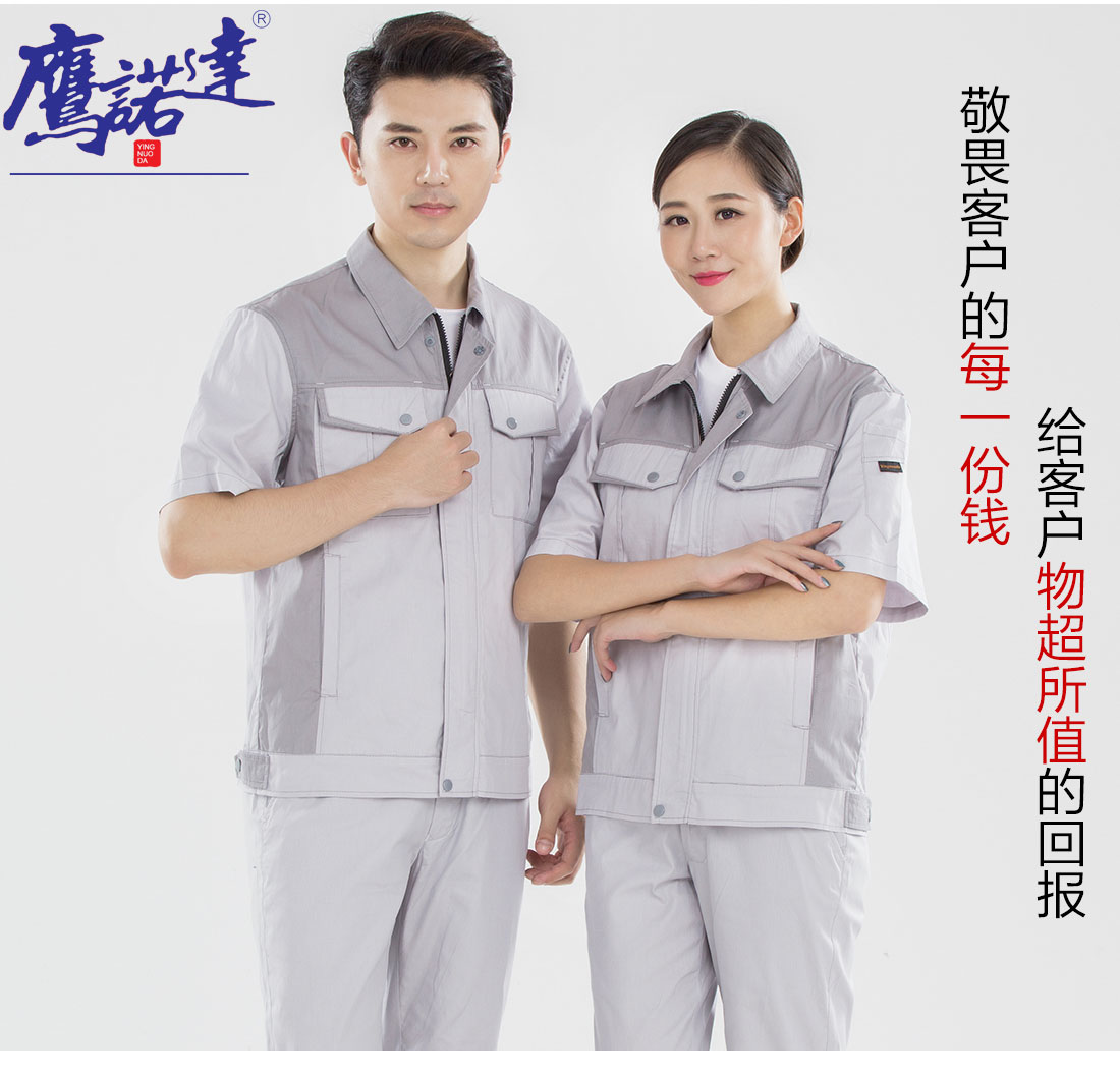 游客于 2018-08-11 17:38:44 发表苏州鹰诺服装:米白拼浅灰色夏季工作服AD17-1-XJ