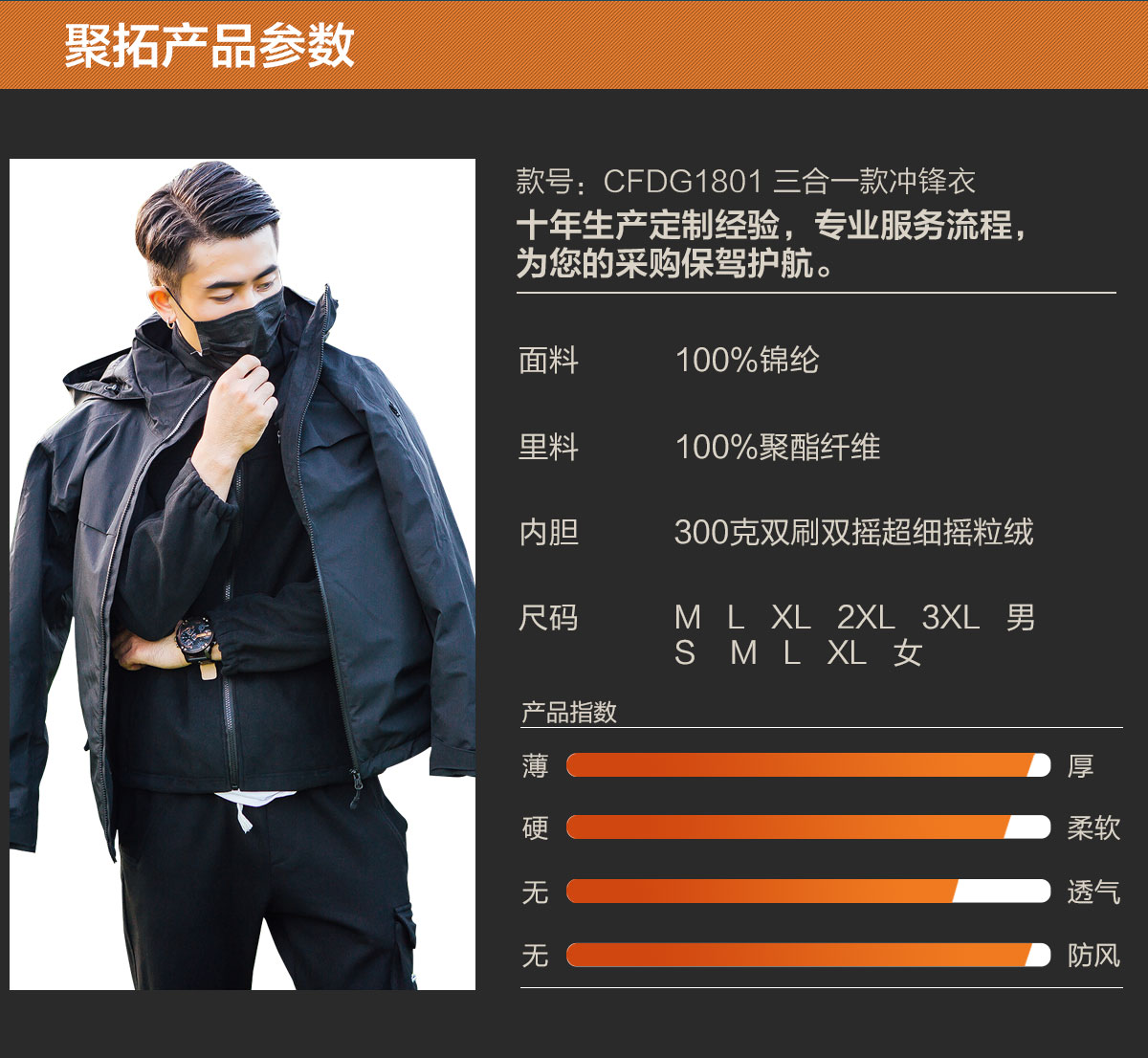 - 游客于 2018-11-24 14:35:21 发表 冲锋衣生产厂家的款式CFDG1801