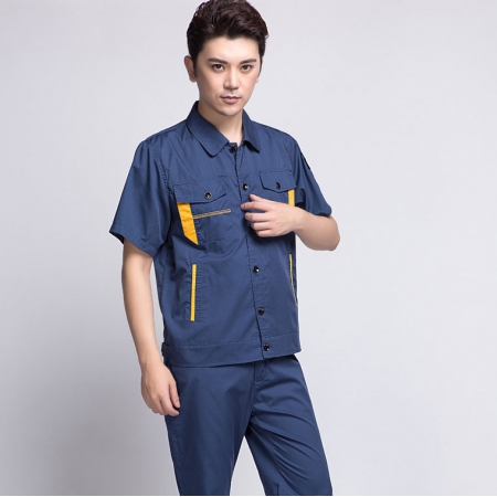 苏州鹰诺服装:深蓝配桔红工作服AD069