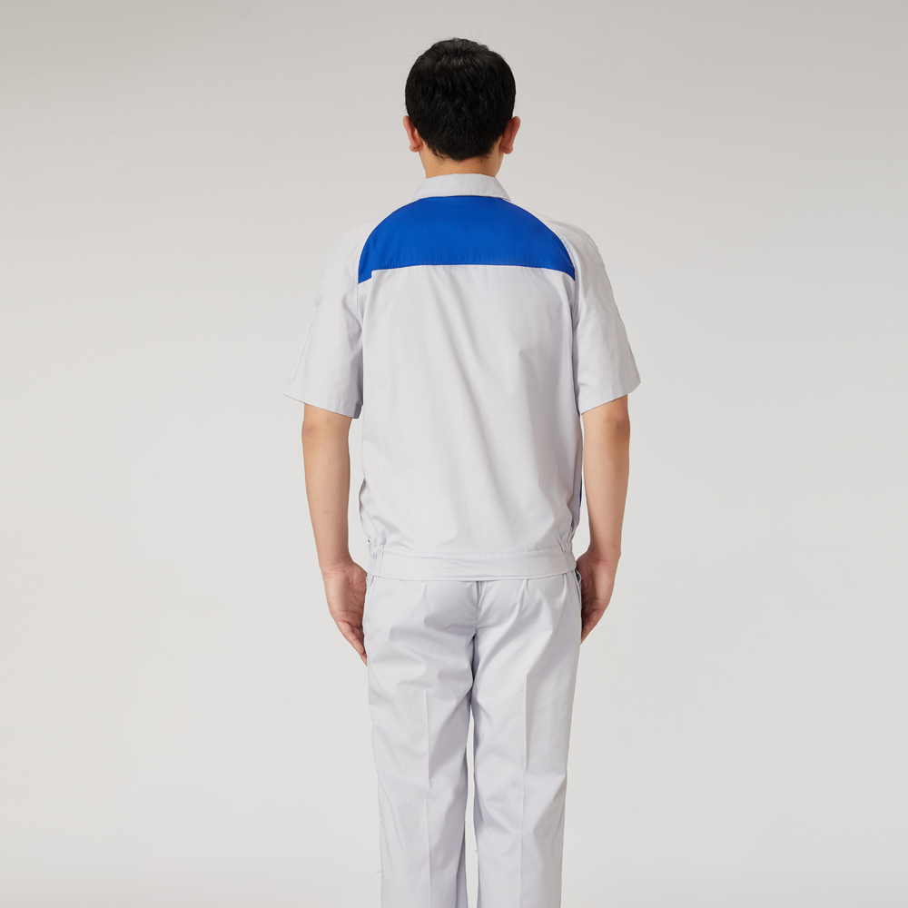 苏州鹰诺服装:灰色拼藏青夏季工作服AD089