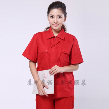 苏州鹰诺服装:深蓝配桔红春秋工作服AC069